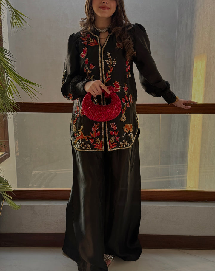 Make a bold statement in black and red. This jacket + dhaka pants combo is totally Eid-ready and perfect for those sunset selfies.