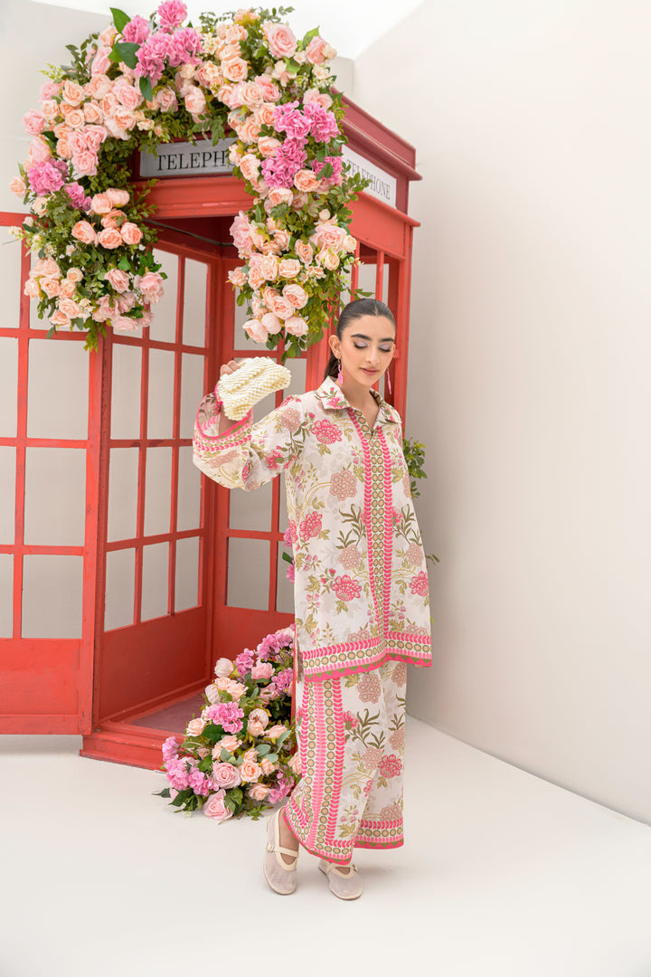 For all our artsy girls! This set features delicate digital swirls and soft florals in candy pinks and beiges. The culottes make it airy and perfect for summer brunches.