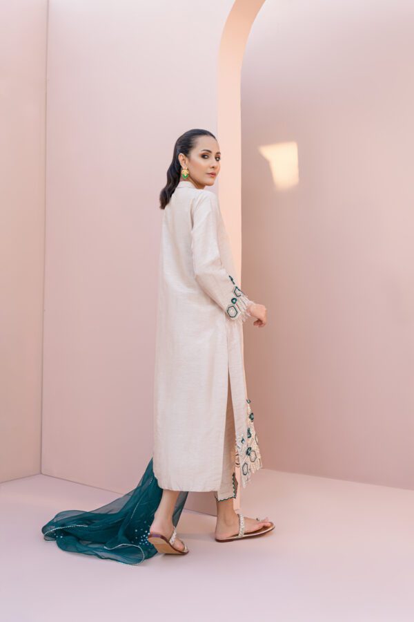 Offwhite elegance with delicate pale green embroidery—Raaya is minimal yet magical. Perfect for both casual and formal looks.