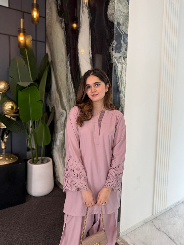 Do you love soft yet chic? The Dewberry piece is a gorgeous mauve pink, styled with solid fabric and pretty schiffli work on the sleeves and bottoms. Totally summer-cute, totally fresh from the lawn collection!